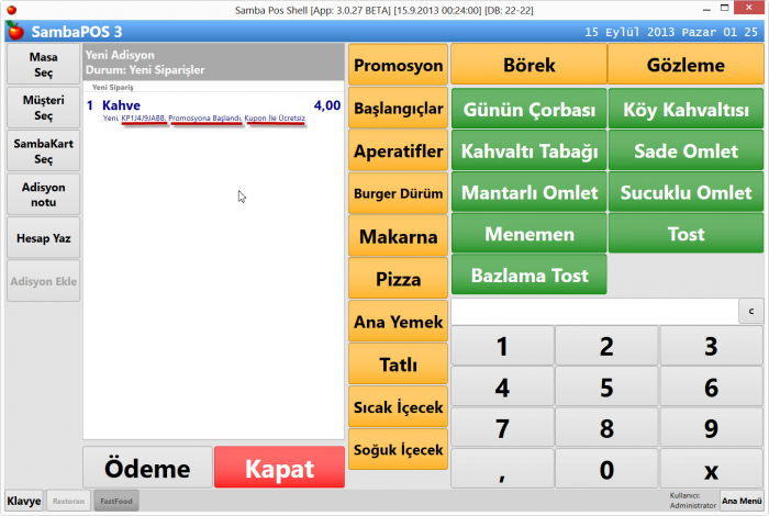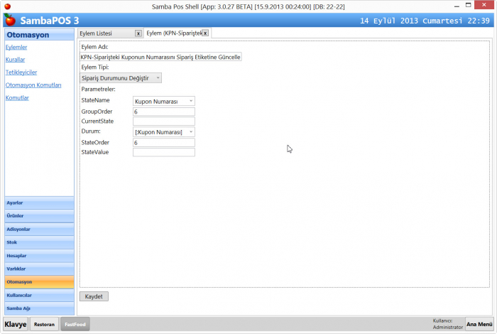 Son Kuralımızıda Kaydettikten sonra Fastfood ekranında yeni bir Kupon numarası çağırdığımızda neler olduğunu bi görelim.