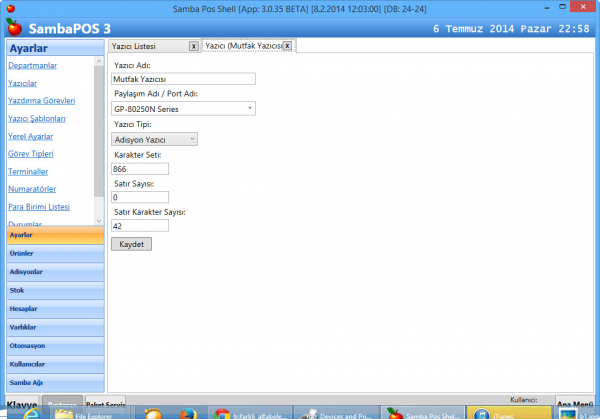 Sırada SambaPOS tarafında olan ayarlamalarım var.