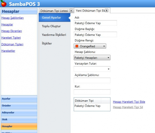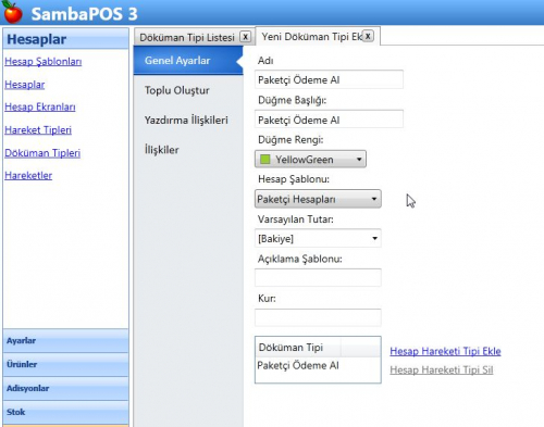 Hareket tipini oluşturduktan sonra ödeme tipi ekliyoruz ve bu hareket tipini orada kullanıyoruz.