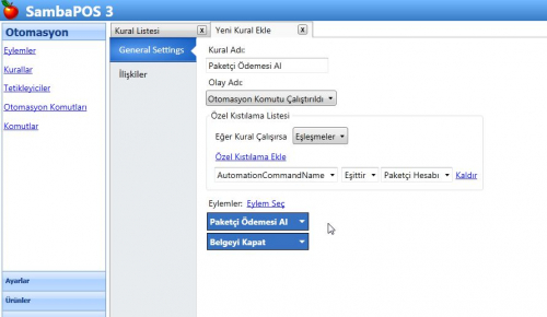 Yönetim > Otomasyon > Kurallar Kural Ekle