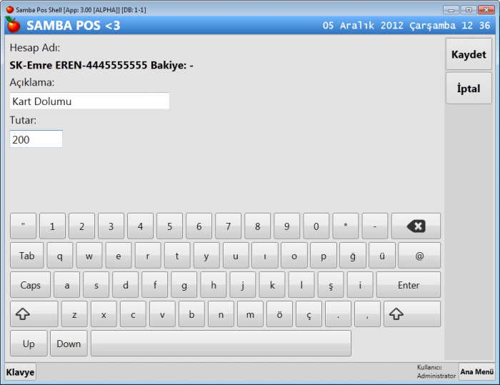 Kaydet tuşuna bastığımızda SambaPOS'a Ön Ödemeli Kart özelliğini eklemek için gerekli tanımları yapmış bulunuyoruz… Yapacağımız işlemler bu kadar. Şimdi bu özelliğin nasıl çalışacağını adım adım inceleyelim.