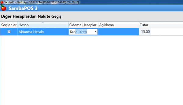 Selamlar SambaPOS ailesi. Zaman zaman iş yerimizde ödeme türünü yanlış seçebiliriz. V2 de ters işlem yaparak bunu düzeltiyorduk bir gider hareketi ve bir gelirhareketi oluşturmamız gerekiyordu. Yine aynı şekilde posda biriken parayı nakite çevirip kasaya koyduğumuzda kredi kartından gider heraketi oluşturup nakit hesabına bir gelir hareketi oluşturmamız gerekiyordu.