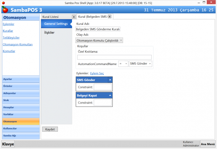 Yukarıda anlatılan uygulamalar için SambaPOS V3.017 veya üzeri bir versiyon kullanmalısınız.