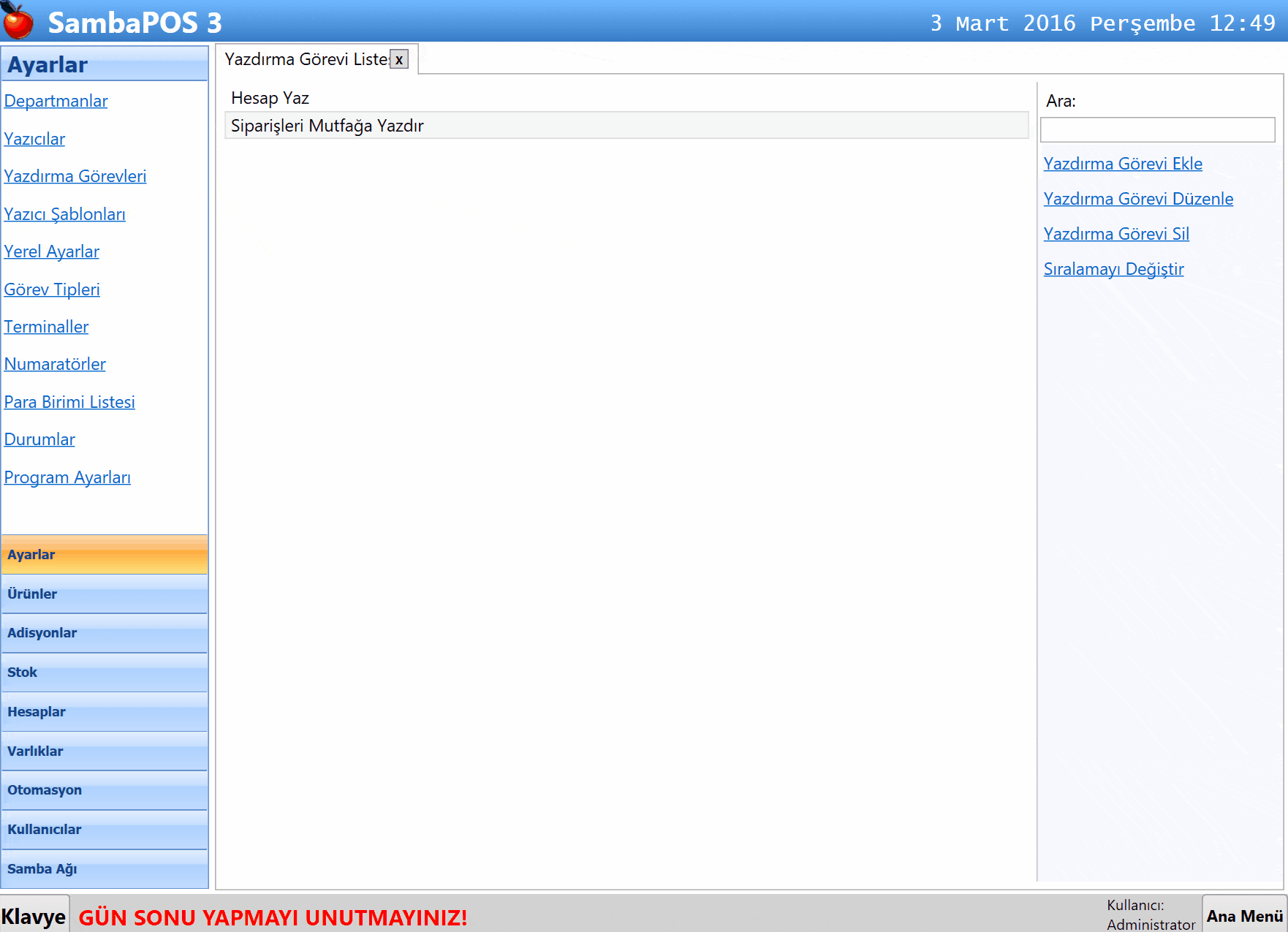 Yazdırma Görevine Satır aşağıdaki gibi eklenir.