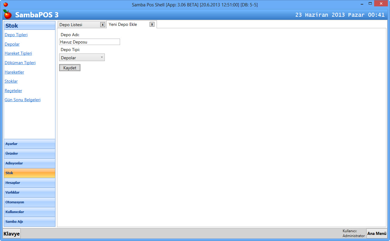 - SambaPOS V3 de Depo Uygulamaları